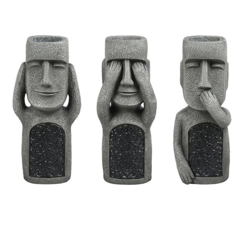 Die künstlerische GardenGlow Blumentopf-Skulptur verfügt über ein gestaltetes Design mit integrierter Solar-LED-Leuchte. Das Produkt besitzt eine solide Struktur, die für den Außenbereich geeignet ist. Die Solarleuchte ist in der oberen Partie der Skulptur eingebaut, und das Design zeigt deutlich den Blumentopf sowie die Lichtelemente.